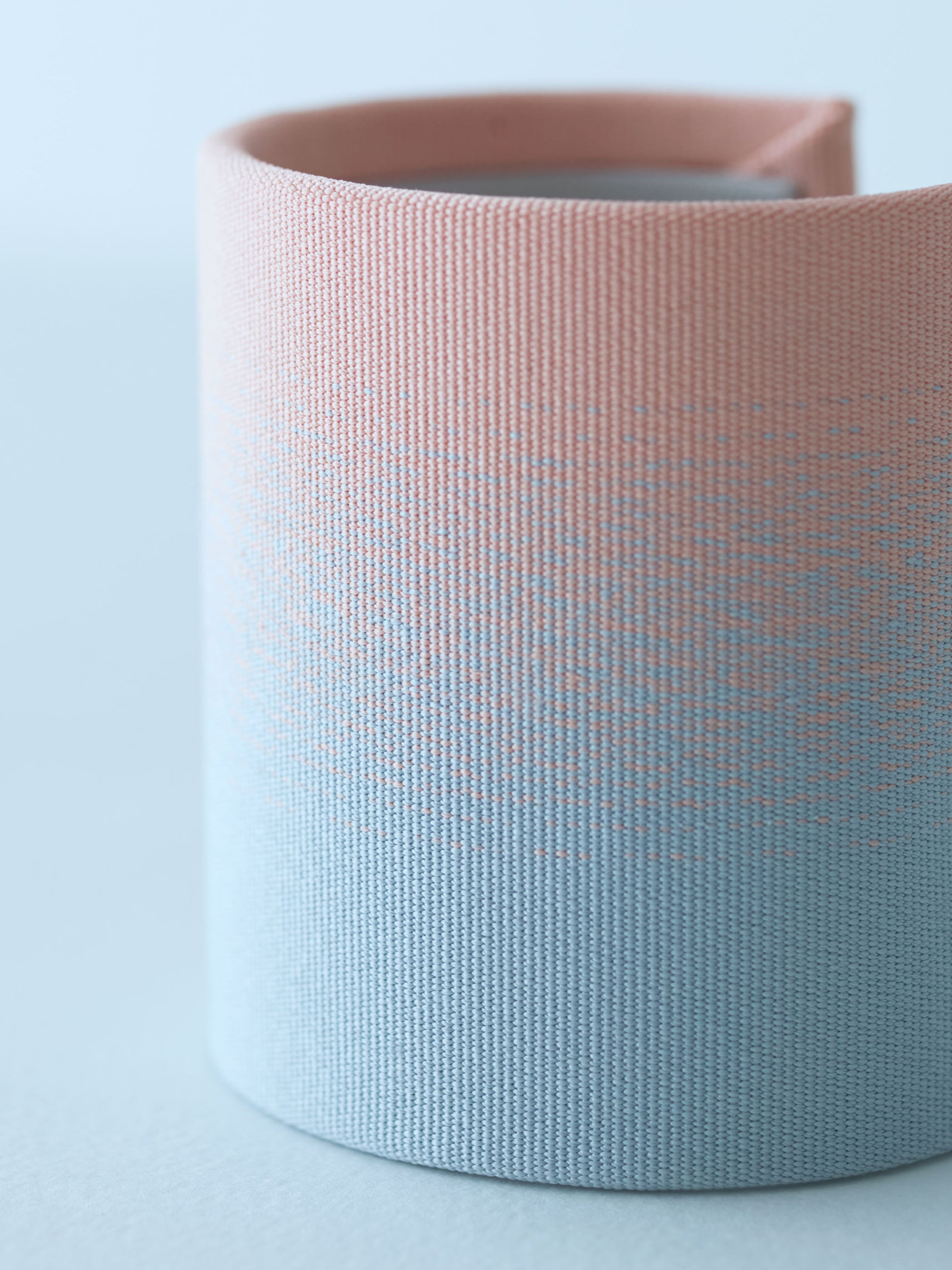 滋賀の織元、清原織物との制作による西陣織のジュエリー。 SERIES 02は産地の情景の琵琶湖をテーマにしています。刻々と色彩が変化する湖面や空、水面の反射の美しさを綴織(つづれおり)に落とし込んだ、オブジェのようなバングルのシリーズ。古来から、手仕事に願いや祈りを込め織られてきた織物は、お守りのような存在です。水面のきらめき、揺らぎを紋様として表現した、シルバーやゴールドのジュエリーも展開しています。